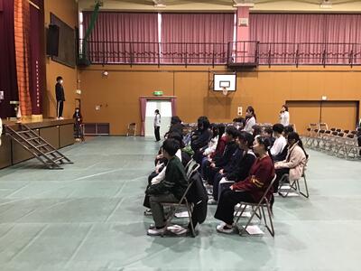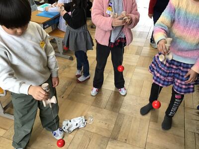 本日、民生委員の皆さまを中心に、地域の方々が1年生のために「昔遊び」を教えに来てくださいました。