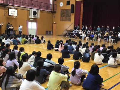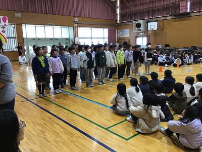 はじめに校区長の森田様から、「いっしょに楽しく遊びましょう。」と優しい声をかけていただき、子どもたちの表情も一気にほころびました。