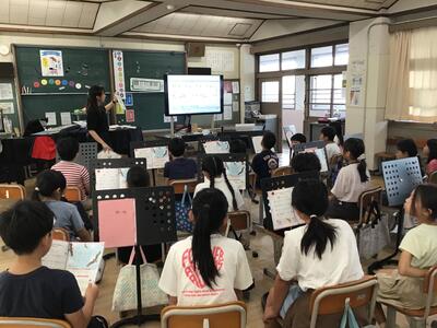 さて、2時間目に音楽室を覗くと、4年生が音楽の学習中で、「とんび」の歌を学んでいました。mfやmpを意識しながら歌うように、中川先生が指導されていました。