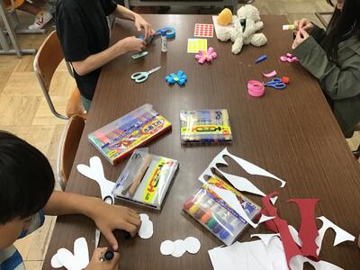 図書・掲示委員会では、校内の様々な掲示物の飾りを作成していました。