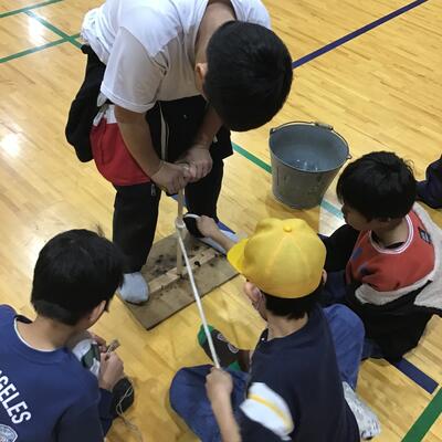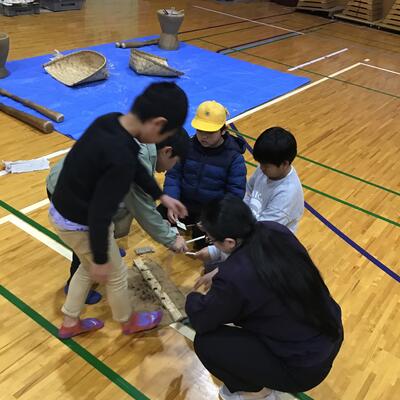 放課後げんき広場は、雨のため残念ながら中止になりましたが、4年生、6年生対象の「企業プログラム」は体育館で予定通り実施しました。弥生時代の暮らしについて、火起こし体験など経験させてくださいました。弥生博物館のスタッフの皆さま、ありがとうございました。