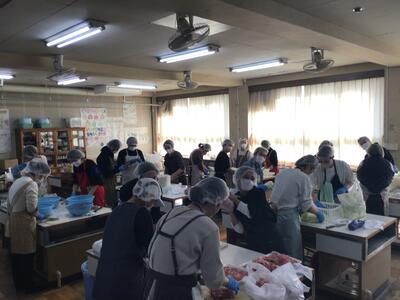 上の画像は明日の道南っ子まつりで、子どもたちが楽しみにしている豚汁の材料です。子どもたちに自分たちが口にする「豚汁はこんな材料から作られているんだ」ということを知ってもらえたらという思いで、調理前に家庭科室前に材料を並べてくださいました。放送でそのことを子どもたちに伝えると、休み時間には一目みようと子どもたちが長蛇の列をつくっていました。午後からは地域の方々や保護者の方々が、野菜を切ったりするなど下準備に集まってくださり、遅くまで作業をしていただきました。