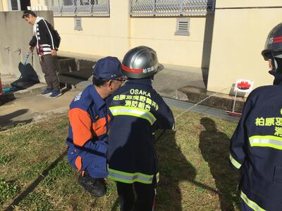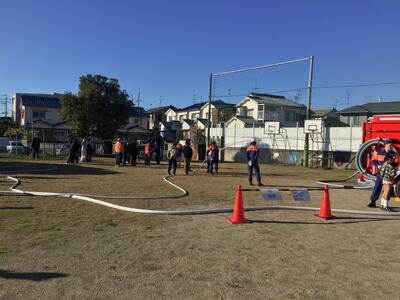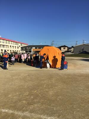 午後からは高学年が道南小地区の自主防災訓練に参加させていただきました。体育館で危機管理室の方の講義でしっかりと学ばさせていただいた後、運動場で各地区の方々といっしょに「消火器訓練」「煙道体験」「放水体験」「AED訓練」を体験させていただきました。ありがとうございました。