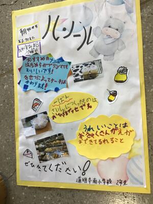 2年生が「総合的な学習の時間」の一環で取り組んでいます「自分たちの住んでいるまち」について、先日にインタビュー等で訪問させていただき、いろいろな質問などに答えてくだったお店の皆さんへ、感謝の気持ちを込めて作成した「手作りのポスター」等を渡しにいきました。それぞれのお店で担当の子どもたちが順番に、考えてきた挨拶を緊張しながらも伝えることができました。行き帰りの歩き方等で少し怒られてしまった場面もありましたが、「それも良い勉強」です。手作りのポスターは、タブレットで背景を作成し、そこに手書きでメモや感想などを書き込んでいくハイブリットな良作です。お店の皆さま、本日もお仕事中にも関わらず、ご丁寧に対応くださり本当にありがとうございました。