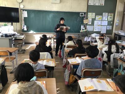 右の2枚は、2年生の「道徳」と5年生の「社会」の授業風景です。2年生は社会性が伸び始め、友だち関係のトラブルも増える時期です。そのため、「ありがとう」「ごめんなさい」が言える友だちの良さを見つける、ちがいを認める、ルールを守って安全に過ごす、といった「人との関わりの基礎 」を育てることを大切にしています。5年生は都道府県についての復習を、タブレットで学習アプリを活用しながら行っていました。自分だけで学習するのではなく、この学習アプリではクラスの友達と協力しながら学習を進めていく内容で、子どもたちも意欲的に学んでいました。