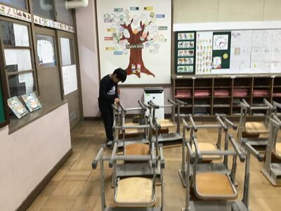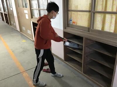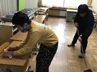 普段なかなか手が届かない場所のほこりに思わず「うわぁ…」と声を上げながらも、「お世話になったし、頑張ろう!」と前向きに取り組む姿が見られました。教室や廊下、特別教室の隅々まで丁寧に磨き上げ、学校への感謝の気持ちが伝わってくる時間となりました。