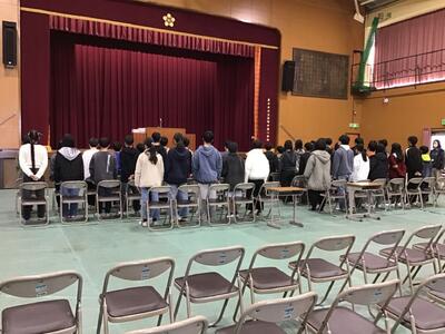 先日の予行でお話ししましたが、無事に卒業式を迎えることができることに感謝して、当日を迎えてほしいです。今まで6年間の小学校生活を過ごしてくるのにたくさんの人にサポートしてもらい、ここまでこれたはずです。家族、親戚、クラスの子、先生、給食配膳員さん、校務員さん・・・・挙げていくと本当に多々の人があなたたちのことをいつも想い、支えてきています。