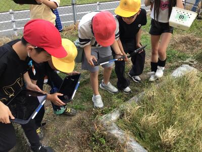 今日の4年生の理科では、春の生き物さがし。お目当ての生き物を見つけたら、タブレットでパシャリ!先日の2年生もそうでしたが、てんとうむしを見つけた時は、テンションアゲアゲ!?即興でてんとうむしの撮影会が始まりました(笑)。ミツバチも近くで咲いているお花のあたりでチラホラ。ハチに近づかないように、という先生のいうことをしっかり聞いて、授業にのぞんでいました。